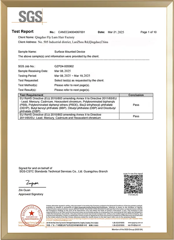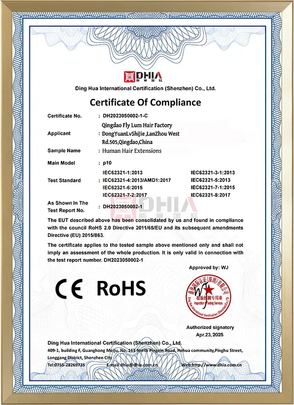 La nostra produzione di extension per capelli è conforme agli standard dell'Unione Europea, ha superato le certificazioni CE e RoHS; ci viene concessa la certificazione di venditore d'oro.
