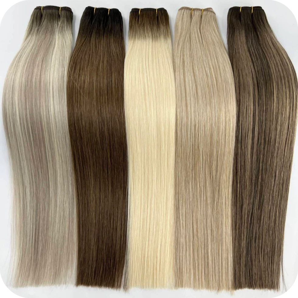 Le nostre extension per capelli Machine Weft sono realizzate con capelli umani Remy di alta qualità, con cuticole intatte allineate per evitare grovigli e spargimenti, presentando una consistenza naturale e liscia che si fonde perfettamente con i capelli naturali. Le trame per capelli Lum sono altamente versatili, disponibili in diverse lunghezze, motivi ondulati e colori, consentendo uno styling libero come arricciare, lisciare e colorare, soddisfacendo perfettamente le diverse esigenze dei diversi tipi di capelli e preferenze di styling. Sono preferite dai professionisti dei saloni e dagli amanti dei capelli in tutto il mondo.
