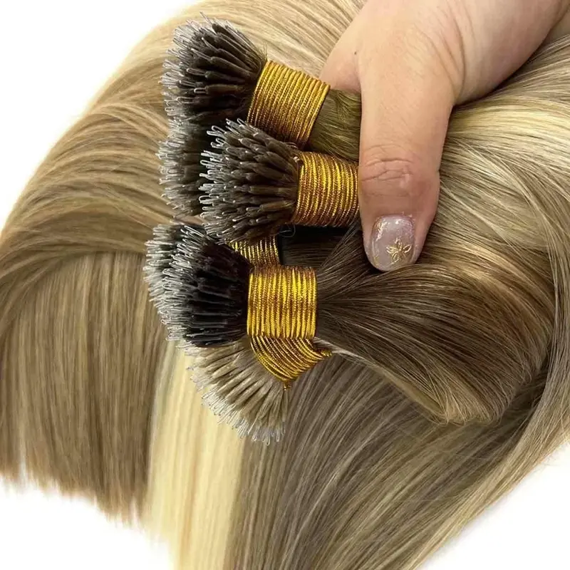Lum Hair, in qualità di produttore esperto, presenta squisite extension per capelli nano russe, un capolavoro di qualità e artigianalità. Queste estensioni sono meticolosamente realizzate con cuticole di capelli Remy, garantendo un aspetto naturale che si fonde perfettamente con i tuoi capelli. Le extension per capelli biondi Remy Nano mantengono il colore e la consistenza più popolari dalla radice alla punta in Europa, offrendoti ogni volta una finitura impeccabile.