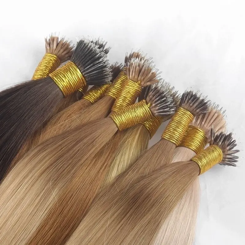 L'innovativo metodo di fissaggio delle nano perline offre una soluzione discreta e leggera per gli appassionati di extension per capelli. Queste minuscole perle, realizzate con materiali di prima qualità, garantiscono una presa sicura sui tuoi capelli naturali senza causare alcun disagio. Il risultato è un'usura duratura e senza preoccupazioni, che ti consente di godere dei benefici di capelli più pieni e voluminosi in tutta sicurezza. Lum Hair è un produttore professionale, le nostre estensioni per capelli con punta nano sono disponibili in una varietà di lunghezze, tonalità e trame di capelli con punta nano personalizzate, rendendo facile trovare l'abbinamento perfetto per il tuo stile unico. Ogni ciocca viene sottoposta a un processo di selezione per garantire una qualità costante e una miscela perfetta con i tuoi capelli naturali.